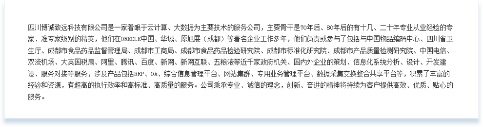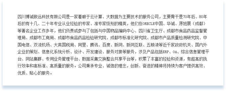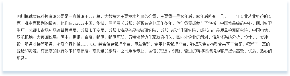 © 2016-2018 四川博诚致远科技有限公司 四川省成都市武侯区少陵东街1号 蜀ICP备18010632号